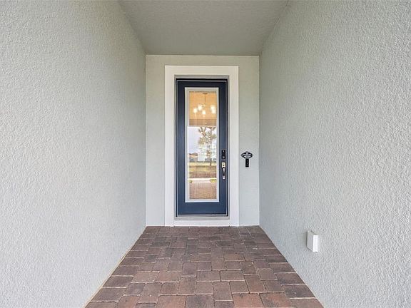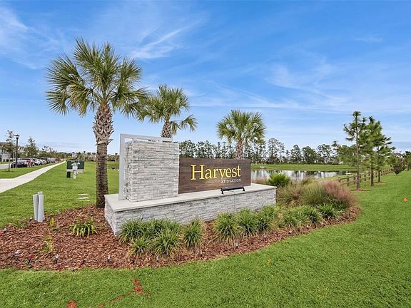Experience modern luxury in this beautifully crafted like new townhome by RockWell Homes. The Edison floor plan offers three spacious bedrooms, three stylish bathrooms, and a two car garage. Thoughtfully designed for comfort and outdoor enjoyment, it includes a welcoming front porch, a covered balcony, a rear patio, and an inviting outdoor living area with a beautiful view of the pond and nightly Magic Kingdom fireworks. Unlike new builds that require months of waiting, this home is move in ready right now, allowing you to enjoy the RockWell Homes quality and design immediately. The gourmet kitchen features a large island, solid surface countertops, stainless steel appliances including range, microwave, dishwasher, and refrigerator, plus upgraded 42 inch cabinetry, a ceramic tile backsplash, undermount sink, Moen fixtures, and elegant lighting. A walk in pantry and adjoining dining space complete the open layout. The main living area includes solid surface flooring, abundant natural light from energy efficient dual pane windows, and seamless access to the covered patio for indoor and outdoor entertaining. The private primary suite offers a serene retreat with dual vanities, an oversized ceramic tile shower, tile flooring, Moen fixtures, designer lighting, and generous closet space. Additional highlights include a full landscaping package with irrigation, window blinds, Electric Car Plug, garage door opener, and energy efficient construction backed by a new home warranty, providing everything needed for immediate move in and luxury living with exceptional views.
