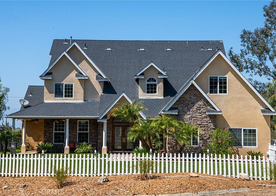 BRING YOUR FAMILY, HORSES AND PETS TO THIS CUSTOM BUILT LAKE VIEW HOME. Back on market due to Buyer non compliance. 4 bedroom, 3 ½ bath home with a library/formal dining, office/bedroom and large game room sits on a fully useable 1.9 AC lot. Leaded glass front doors and 20 ft ceilings welcome you to the entry which is open to the living room where double French doors introduce the beautiful lake view. A library/dining room is to the left of the entry with a decorative wrought iron stairway to the right. The large kitchen is equipped with KitchenAid appliances including a built-in refrigerator, double convection oven and 6 burner stove. There’s an oversized island with seating for four and nice breakfast area. All the lower cabinets and the pantry have roll-out shelving. A small walk-in pantry is around the corner. The kitchen is open to a sizeable family room with fireplace. A relaxing primary suite is located on the first floor along with the office/bedroom, laundry room and guest bath. The Primary suite has a lake view, access to two patios through French doors and the spa like bath has a jetted tub, individual vanities, frameless shower and two walk in closets. There is a junior suite with en-suite bathroom and walk-in closet upstairs. Both North facing upstairs bedrooms have beautiful lake views and French doors that lead to the large upstairs deck with fireplace where you can take in the peaceful vistas of the lake, mountains, hills and trees. The large bonus room has built in cabinets, mini fridge, plumbing for a sink and lots of space for crafting and more. The home is appointed with engineered hard wood, travertine and tile flooring, and high-end lighting fixtures in the entry and living area. There are ceiling fans in every bedroom, family room and game room. Two new Quiet Cool whole house fans help keep the home cool and the electric bill down. The home has three AC units and WIFI connected thermostats. Out side you’ll find multiple covered and uncovered patio areas, a BBQ island with sink, a firepit, landscaping front and back, automatic double swing entry gate at driveway, fully fenced perimeter of three rail white PVC fencing and additional fencing around landscaped areas. The covered patios have ceiling fans. This almost 2AC property is zoned for horses and some agriculture. Home has propane and septic system. Lots of room for an ADU. Enjoy the peace and beauty of this area but have every convenience 10-15 minutes away. Agent is owner.