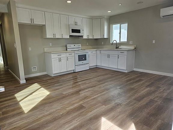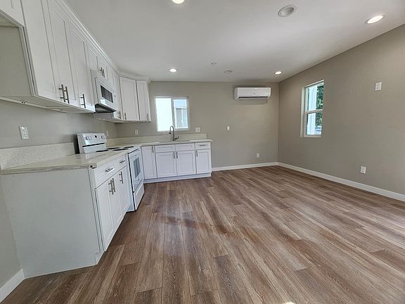 Abundant kitchen cabinetsQuartz counter topsWalk-in closetElectric stoveLaminate flooring