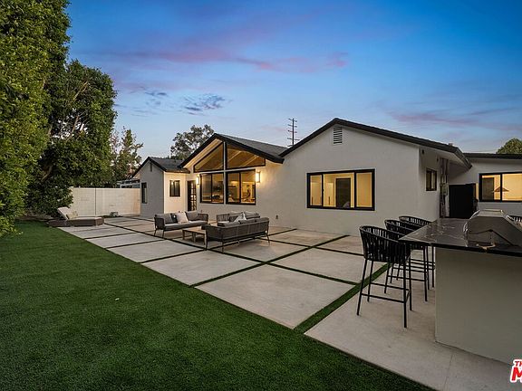 Nestled in the vibrant heart of Sherman Oaks, this gated mid-century gem graces a generous, flat lot, reimagined through a meticulous full renovation that offers the comfort and quality of a new home, with the character and charm of timeless design. Step inside to discover a bright, open-concept layout highlighted by sun-filled living spaces. Meticulously curated finishes elevate the everyday: sleek marble-tiled bathrooms that exude spa-like serenity, and a bespoke chef's kitchen outfitted with premium appliances and flowing countertops crafted for both intimate family meals and show stopping gatherings. A beautiful backyard retreat awaits, where manicured lawns, mature hedging, and outdoor kitchen and grill area create the perfect stage for al fresco adventures. Accommodations abound with four sun-drenched bedrooms in the main residence, plus a versatile one-bedroom ADU complete with its own full kitchen ideal for guests, home office, or rental potential. Ample parking seals the deal: a covered carport pairs with an expansive gated driveway that accommodates five or more cars with ease. In one of the Valley's most coveted enclaves, this is more than a residence: it's a rare canvas for your story, fully realized and ready to inspire.