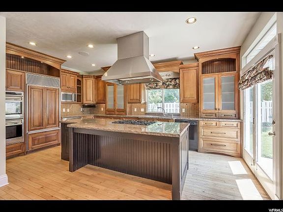 Welcome to your new home in the desirable city of Draper. The Custom kitchen is a dream with six burner wolf gas stove top, wolf double oven with warmer drawer, range hood above large island, 2" granite counter tops, stainless steel SubZero refrigerator included, custom cabinets, hardwood floors, JVC CD player with Klipsch speakers on main level, TV mounted under cabinet in kitchen, under cabinet and floor lighting, Master has hardwood floors with a large walk-in closet, separate tub and shower. New carpet in all of the bedrooms, Basement has slate tile with built in custom shelving in the library, theater room with Polk Audio system, RV parking with mature landscaping and fully fenced yard, pergola with stamped concrete and garden area. Located close to community pool, amphitheater, hiking & biking trails, shopping and so much more. Don't miss out on this amazing home.