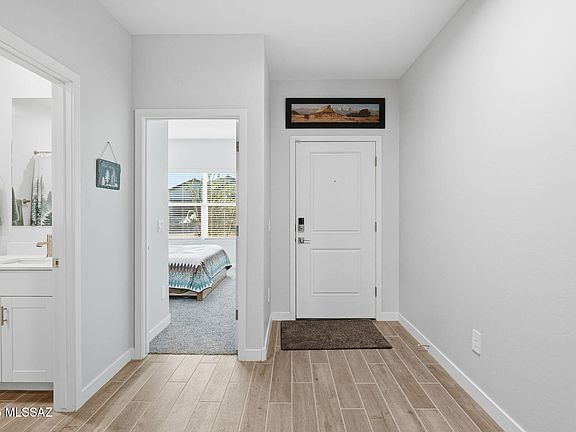 Beautifully upgraded home in the heart of the Rocking K community! This 1,815 sq ft single-story home is fully enhanced with luxurious finishes and solar for energy efficiency. Open-concept living features 9-ft ceilings, quartz countertops, white cabinetry, stainless steel appliances, and a designer kitchen backsplash. Upgrades include professional paint, custom accent walls, and elegant ''his & hers'' cabinetry in the primary bath. Step into the backyard and enjoy a private retreat with lush turf, pavers, a covered patio, and stunning mountain views. Highlights include an elegant Ironworks front door, epoxy garage floor, and water softener. Unlike new construction, everything is complete--just move in and start living your dream. Welcome Home.
