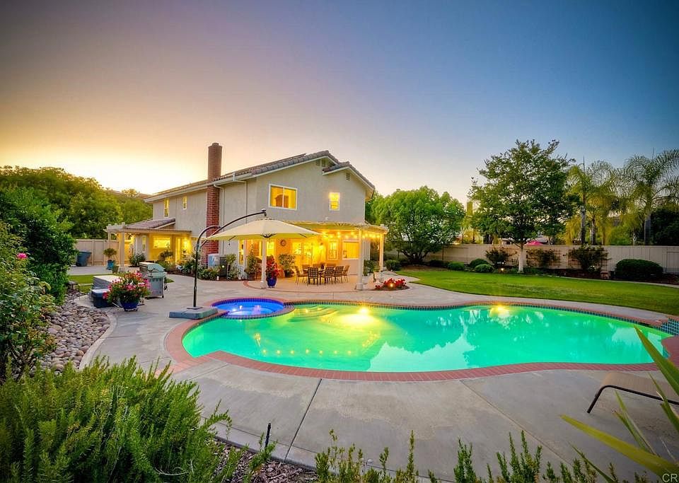 Welcome to this stunning California Contemporary in sought-after Rancho Arbolitos. Nestled on a spacious 1-acre lot and quiet cul-de-sac street, this meticulously maintained home offers over $160,000 in upgrades. Beautiful curb appeal greets you with lush landscaping, a freshly painted exterior, new windows, and a three-car garage. Inside, you’ll find vaulted ceilings, plantation shutters, and designer finishes throughout. The flexible downstairs bedroom with a full bath is perfect for guests, in-laws, or a private home office. Enjoy the entertainer’s dream backyard featuring a sparkling pool and spa, outdoor fireplace, large pergola, children’s Rainbow play structure, and a vast grass area for gatherings and play. The chef’s kitchen includes granite countertops, a gas cooktop, and a breakfast nook overlooking the backyard oasis. The spacious primary suite offers vaulted ceilings, a well-appointed bathroom with dual sinks, a soaking tub, a separate shower, and a walk-in closet. Additional highlights include a fully owned 6kW solar system plus pool solar, a newer high-efficiency HVAC, new roof tiles and underlayment, PEX re-piped plumbing, and fresh interior/exterior paint. Located in the award-winning Poway Unified School District with no HOA and no Mello-Roos fees, this home exudes warmth, charm, and timeless elegance. An absolute must-see!