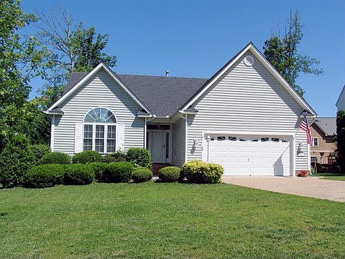 Midlothian Very open Transitional ranch on quiet street, vaulted ceilings, bright open floor plan, living area with gas logs, built-in cabinets with shelves, large master suite with private deck entrance, huge master bath with stand-up shower and garden tub, double vanity and separate toilet area. French doors to office, large screened porch and deck, paved driveway, irrigated yard on separate meter, home is handicap accessible, wood floors throughout except bedrooms, tiled baths and huge shower.