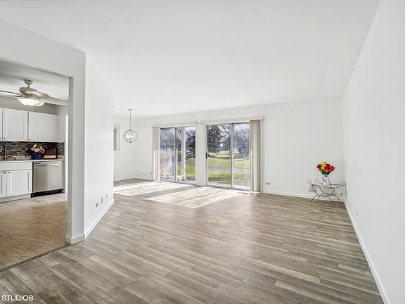 No more waiting for this ranch unit that's totally updated and ready to move in. Updated with all the modern conveniences and features such as laminate floors in the living, dining and two bedrooms, ceramic tiles in the kitchen and two bathrooms; Kitchen has Stainless Steel appliances, quartz countertops, glass tile for backsplash, good size pantry, white cabinets, ceiling fan and a space for an eat in area. Bathrooms are also updated with a corian vanities, ceramic tiles, shower stall in the master bath and tub in the hall bath. Decent size bedrooms with generous closet space in each and pleated shades for window treatments. Utility room has full size washer & dryer with some cabinets for storage. Six panel doors and freshly pained throughout . Two large sets of sliders to patio with a treed courtyard view. Garage has been painted with extra shelving for storage. Walking distance to Pool, Clubhouse & Private Nature Reserve. Convenient location to Metra, expressway & all Shopping