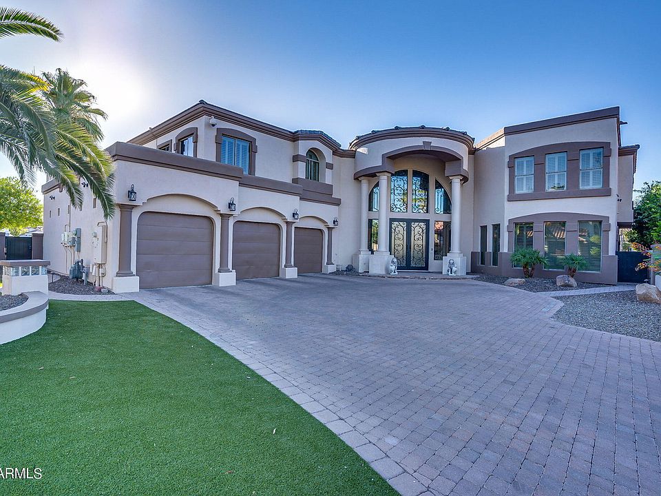 Magnificent lakefront 2-story basement estate on rare Peninsular lot w/nearly 239' (2 sides) of lakefront nestled on a cul-de-sac lot in the prestigious, gated West Lake Estates Val Vista Lakes water-wonderland Community. Approximately 8,429sf above grade & 3,276sf of beautifully finished basement w/ living quarters, wet bar/kitchenette, 720 btl wine room & gym; a bright upper level attached full Guest Quarters w/sep. entrances; nearly new roof, HVAC & OWNED solar! Thoughtful design w/ superior function, energy efficiency & a flowing floor plan for easy living & entertaining. Timeless architecture, stunning water views & mountain vistas - a lifestyle second to none. Lavish community amenities w/ convenient location to shopping, dining & easy highway access; minutes to airport! SUPPLEMENT: Amenities and updates abound in this luxurious lakefront residence!