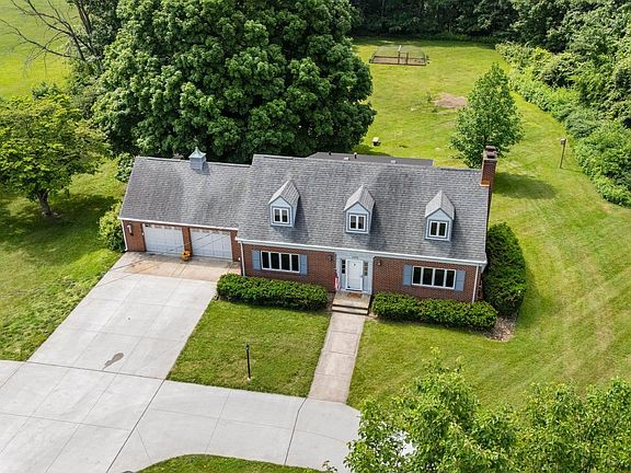 This South Side property, set on 1.85 acres, features hardwood floors throughout professionally cleaned. Living room offers wood-burning fireplace with built-in bookshelves, cabinets, lots of windows and open to formal dining room offering lots of natural daylight. Its country kitchen boasts of newer appliances and ample cabinet and counter space. The main level includes a versatile flex room, could be master bedroom, office, music room, library/TV room. While the upper level offers another spacious master and two additional bedrooms with custom bunk beds, dormers, and window seats. Lower level offers a family game room with new flooring and freshly painted. Lots of storage space. Large two car garage with new garage doors, notice the new circular driveway and sidewalks. Roof approximately 9 to 10 years old. Outbuilding 15 x 20 and garden 16 x 26 protected from deer that may wonder through your yard not to forget Woodpeckers & Eastern Blue Bird that like to visit the bird feeders. Enjoy your visit to this wonderful family home. Buyer agent to verify measurements and schools.
