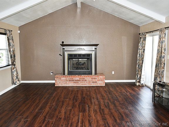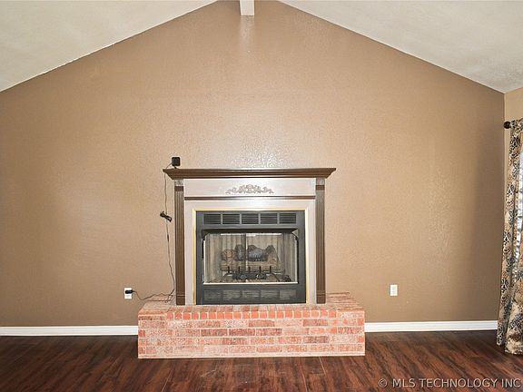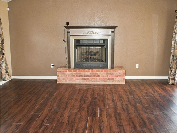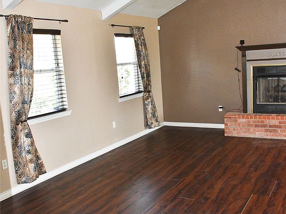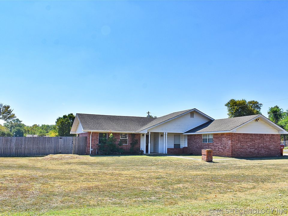 Must see this lovely brick home situated on the on a quiet street among other nice homes with schools, medical, Churches, dining and retail all within a short driving distance. Offering 2,051 square feet, the home's foyer leads to a huge living area with a gas fireplace, vaulted ceiling and sliding patio doors that lead to a covered porch overlooking the massive back yard, fully fenced with 6' privacy fencing. There are two dining area options, one a primary dining room with modern lighting and a bright and cheery bay window breakfast nook off the kitchen, which has laminate counter tops, honey-hued cabinetry, and white appliances including a smooth-top electric range, built-in microwave, dishwasher and refrigerator. The double-sided kitchen sink has a garbage disposal. The primary bedroom has a walk-in closet with built-in's and a private bathroom with a tub/ rain shower combo. There are also two guest rooms, one of which has chair rail molding, and a full bathroom with a tub/rain shower combo for guests. The home's large utility room has full-size washer and dryer connections and cabinets and shelving for storage, and any additional storage needs can be met by the two-car attached garage with a storage closet. If you are looking for a nice, well-maintained home in town, call to tour this one while there is still a chance to buy it!