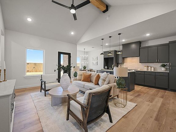 Discover affordable luxury in The Overlook of Wolfforth. This gorgeous 3 bed, 2 bath home features a striking kitchen with modern cabinets, stylish tile, and bold fixtures that create a contemporary, sophisticated vibe. High ceilings, exposed beams, and a spacious open-concept layout make this home ideal for both entertaining and everyday living. Relax in the serene master suite, complete with a spa-like bathroom and ample closet space. Located in the highly sought-after Frenship ISD, this home blends upscale design with comfort and convenience. Don't miss your chance to own this beautiful home in The Overlook of Wolfforth!