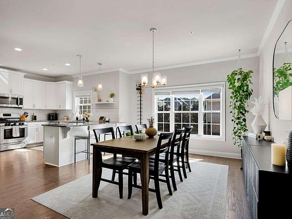 Welcome to this stunning townhome in a beautiful, gated community with amenities located only minutes away from the Marietta Square! This unit has a timeless blend of brick and siding facade with a two-car garage. Open the front door to a quant entrance foyer with hardwood floors and a convenient bonus bedroom and full private bathroom. Head upstairs to the bright open floorplan showcasing a designer kitchen, dining room, & living room! Kitchen features white shaker cabinets, sleek stainless-steel appliances, separate pantry, white subway tiled backsplash, speckled granite countertops, & peninsula with overhang for bar seating and entertaining! This smart home has energy efficient windows that let in tons of natural light. Situated just off the kitchen is the dining room that provides a natural extension for shared meals and conversations! The family room with shiplap covered fireplace is the perfect spot to gather! From here, step through the sliding glass door leading to a charming walk-out private backyard deck that is great for grilling, entertaining, or simply unwinding after a long day. The stairs lead down to the grassy backyard lawn. There is also a half bathroom on the main that is great for any guests. Heading upstairs, you'll discover a versatile open loft area & the laundry room with ceramic tile flooring. The large plush primary suite with tray ceiling serves as a private retreat, complete with a spacious walk-in closet, a tiled shower, a soaking garden tub, and a double vanity adorned with white countertops. The additional upper bedroom has a full bath ensuite, a walk-in closet, and large picture windows that look out into the backyard. This delightful community has a dog park and a clubhouse along with a refreshing pool. The homeowner's association has professional community management team that takes care of the amenities, all exterior landscaping, exterior maintenance, both trash & water utilities, and includes a repair & retreat termite bond on each property, making life easier for you! This townhome beautifully combines comfort with convenience. With I-75 so close-by, you can easily get to where you need to go or enjoy the Marietta Square with endless dining, shopping, farmer's markets, concert nights, Chalktober Fest, and everything else the Square has to offer!