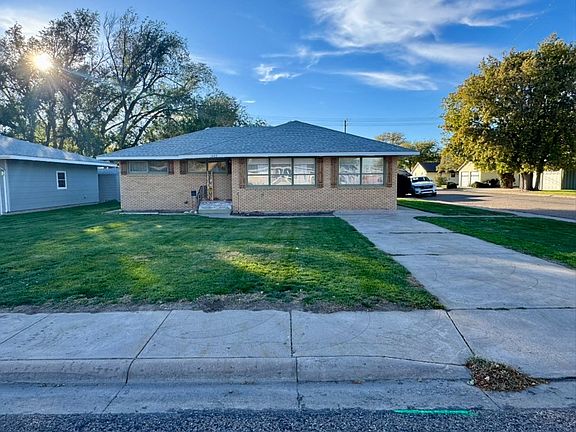 Peaceful 3 bedroom, 1.5 bath home in a great Goodland neighborhood. Open living area with updated flooring and extra room for second living area, office or craft space. Enjoy a large concrete patio with mature trees for shade and an oversized, heated, two car garage!Sitting on a corner lot in a great neighborhood, this property offers a welcoming outdoor space with room to enjoy. A large concrete patio in the backyard provides the perfect spot for grilling, relaxing, or hosting friends. Mature trees offer great evening shade, and established shrubs add a touch of greenery and privacy while still keeping the yard open and easy to maintain. Recently installed automatic sprinklers make lawn care simple and help keep everything looking its best. This 1,418-square-foot home features 3 bedrooms and 1.5 bathrooms with an open, comfortable layout. Recently updated flooring gives the home a fresh, clean feel. The main living area flows nicely into the kitchen and dining area. Just off the main family room is an additional area that can be used as a second living room, office, or craft room - whatever fits your needs with the half bath attached. On the other side of the family room and kitchen is a hallway to the bedrooms and full bathroom. Outside, you'll find great parking and storage options. The attached carport provides covered parking and can also be used as a shaded patio. The heated, oversized detached garage offers two indoor parking spots plus extra room for tools and projects. There is also a small attached storage space for garden tools and lawn equipment helping save space in the garage.