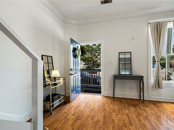 c 1900. Own this stunning renovated end-unit townhouse near vibrant Thomas Square/ Starland Districts. Steps from Forsyth Park and the Saturday Farmer Market, SCAD campuses, shops andrestaurants. Light-filled 2BR/2BA with open-concept living, exposed brick fireplaces, lofty ceilings, hardwood-look floors, crown molding and natural finishes. Three-sided windows flood home with natural light.Plenty of great storage including the under the stairs closet. Private fenced courtyard featuring sun drenched privacy, Fresh paint (2025). Rare opportunity to purchase in Savannah's most sought-after neighborhood. Move-in ready with historic charm and modern convenience. Click Reel for More Information