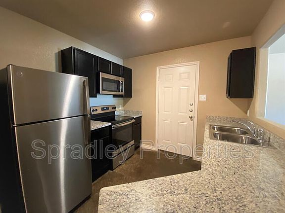 Stunning 3 bedroom, 2 bath, 1 car garage duplex. Features include: stained concrete floors, granite counter tops, all kitchen appliances, washer/dryer connections, and fenced backyard with sprinkler system.