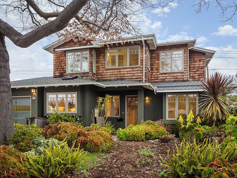 Tucked away on a quiet street in St. Francis Acres with access to Los Altos schools, this elegantly expanded Craftsman residence enjoys dignified curb appeal and a flexible floorplan imbued with light. The living room is anchored by a handsome brick fireplace, while the formal dining room boasts French doors to the yard. The eat-in kitchen is a home chef's dream, with gleaming cabinetry and attractive stainless-steel appliances. Accessed via a staircase with skylight overhead, the second floor is your personal sanctuary, with a primary suite offering a tile floored reading nook, walk-in closet, and remodeled split bathroom, as well as an adjacent bedroom with window seat perfect for a home office. The rear yard, accented by brick hardscaping and Zen inspired landscaping, is a tranquil retreat for dining and relaxation. Defined by its details, from cleverly placed skylights to cottage-style windows to period specific light fixtures, this home is the perfect blend of quality and comfort.