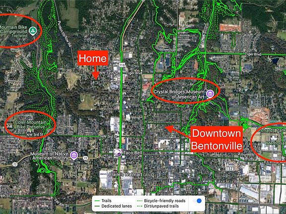 Discover the charm of this split-level 3-bed/2.5-bath home with a bonus level lot. Located on a quiet corner in a well-established Bentonville neighborhood between Downtown & Coler Mountain Bike Preserve—quick access to the square, coffee shop, trails, dog park, schools, grocery stores, & the Greenway. Remodeled upstairs (9/2024) with LVP flooring, new walls, fresh paint, crown molding, updated fans & fixtures. Fireplace, inground pool, detached garage, & a 1,900 sf garage/workshop with electricity—ideal for extra parking or hobbies. Enjoy the peace of a low-traffic street—great for kids on bikes. Whether you’re an outdoor enthusiast or love Bentonville’s amenities, this location offers the best of both worlds. Make this versatile property your own!