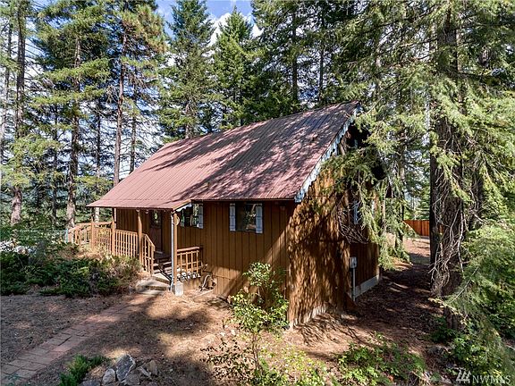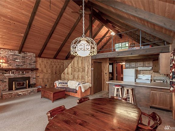 Darling, year round access cabin in Sun Country with large deck looking over golf course and river. This charming cabin has vaulted ceilings with an open concept for great room to kitchen and dining room. Large floor to ceiling windows to allow sunlight in and beautiful view. Enjoy entertaining on the expansive deck and hot tub nestled on bluff looking out over river. Cabin sleeps 10 people easy. This could be the perfect weekend cabin or full time residence. Only 1 hour east on Seattle.