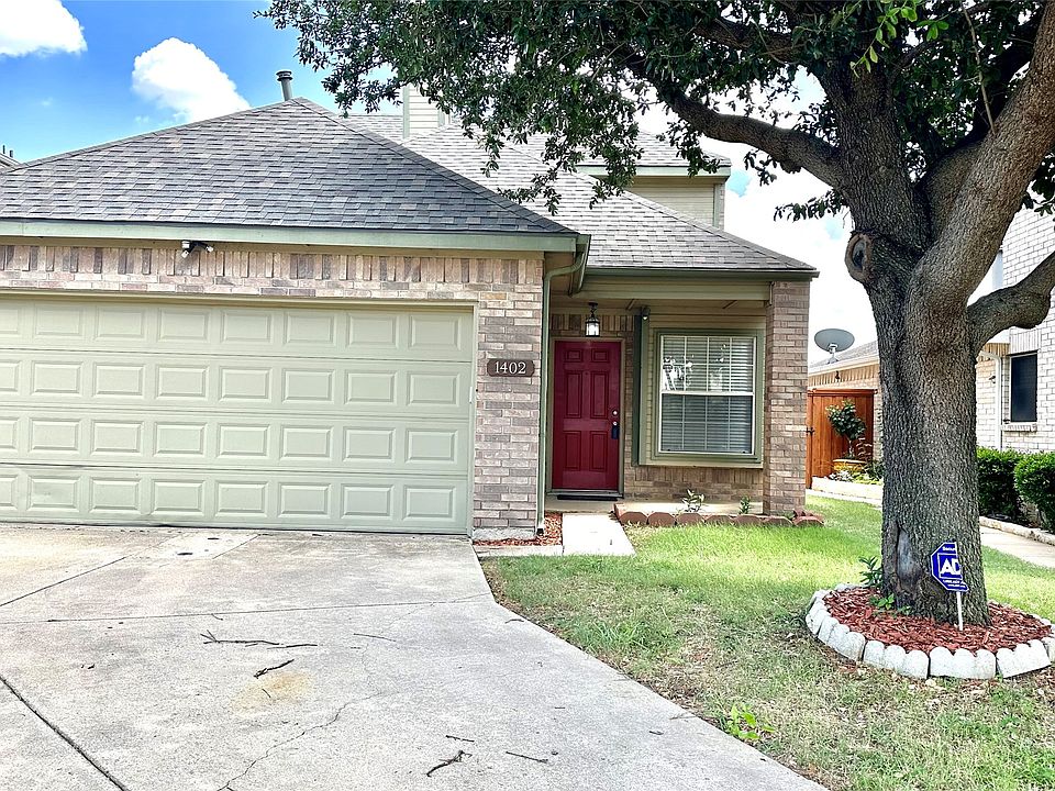 Charming 3-bedroom, 2-bath home with a 2-car garage. The primary bedroom is conveniently located on the first floor for added privacy. Enjoy a spacious living room with a cozy gas fireplace, and a kitchen featuring beautiful granite countertops. Easy access to I-35, train station, shopping, and dining makes this home perfect for comfort and convenience.