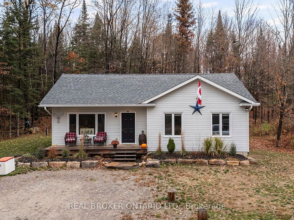 CHECK OUT THIS MODERN COUNTRY BUNGALOW. BEAUTIFUL 3-BEDROOM, 1-BATH GUILDCREST HOME ON A PRIVATE 1-ACRE LOT, JUST 10 MINUTES FROM MINDEN. BUILT IN 2022 AND SURROUNDED BY MATURE TREES, THIS TURNKEY BUNGALOW FEATURES AN OPEN-CONCEPT LAYOUT, BRIGHT LIVING SPACE, AND WALKOUT TO A LEVEL YARD AND BACK DECK. THE KITCHEN OFFERS MODERN GREY CABINETRY, A LARGE ISLAND, AND AMPLE STORAGE. ENJOY LOW-MAINTENANCE LIVING WITH VINYL SIDING, PROPANE HEAT, NEW SEPTIC, DRILLED WELL, AND DRIVEWAY. INCLUDES 7 YEAR TARION WARRANTY AND GUILDCREST 10-YEAR WARRANTY. YEAR-ROUND MUNICIPAL ROAD, CLOSE TO LAKES, TRAILS, AND ALL AMENITIES.