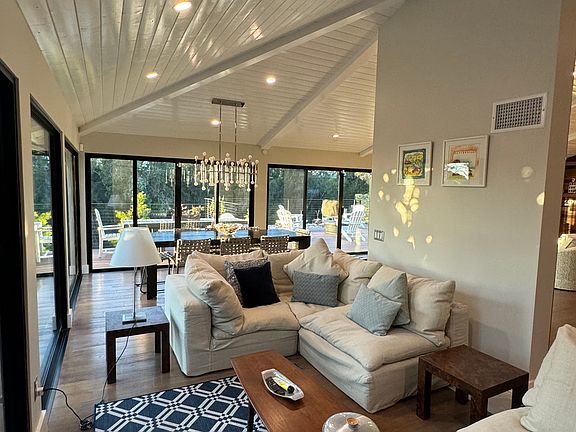 Fully furnished. No Pets please. Includes weekly cleaning, gardener service. New ocean-view hot tub built into deck just installed! Fully rebuilt in 2018 with high-end materials, appliances. JUST completed $400K remodel vaulting ceilings in main living area. Very private and serene with fabulous ocean views from many rooms and new oversized custom deck built into canyon. 5th bedroom is a detached office with ocean views! No neighbors visible behind you, just lush preserved land. Absolutely spectacular clean, new & modern ocean-view home. Brand new solar power system covers most/all electric charges. Discount for 5+ month stays. Other months/lengths vary from 16-18K