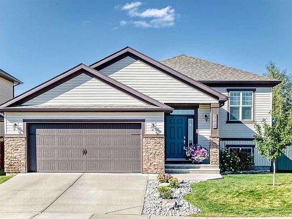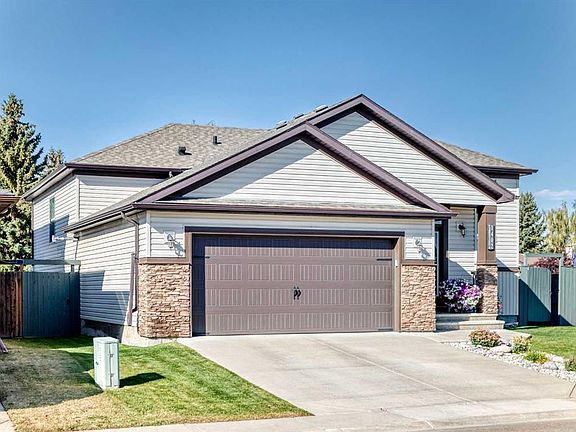 Come and take a look at this beautiful, meticulously maintained Bi-Level in Carstairs — a home that has been lovingly cared for with thoughtful details throughout, leaving nothing for you to do but move in and enjoy. From the moment you drive up, the meticulous landscaping sets the tone for what awaits inside. Step through the front door and you’ll be greeted with updated flooring that flows seamlessly through both the main and lower levels. The kitchen offers ample counter space, a corner pantry, stainless steel appliances, and opens onto the living and dining areas. A cozy gas fireplace with a mantle anchors the living room, while patio doors lead out to the deck, patio, and backyard oasis. The main floor also features a spacious primary suite with a walk-in closet and a 5-piece ensuite, complete with double sinks, a soaker tub, and a separate shower. A second bedroom and full bathroom complete the main level. The fully developed lower level boasts high ceilings with a suspended design for easy access, two large bedrooms, a family room, a four-piece bath, a generous laundry area, and fantastic storage with shelving that stays. Practical touches continue in the double heated attached garage, equipped with a workbench and rubber mats on the stairs. Outside, the backyard is truly a work of art — complete with a greenhouse, trampoline, mature trees, a large patio with built-in umbrella, and full fencing. Even better, the yard is wired for a Husqvarna automower (robotic mower), which is included.This home is the perfect blend of comfort, practicality, and beauty — and must be seen in person to be fully appreciated.
