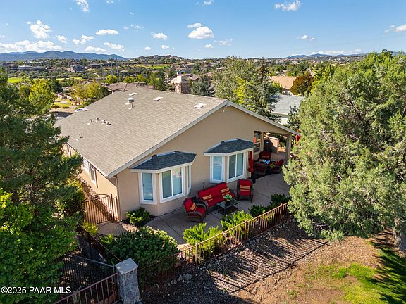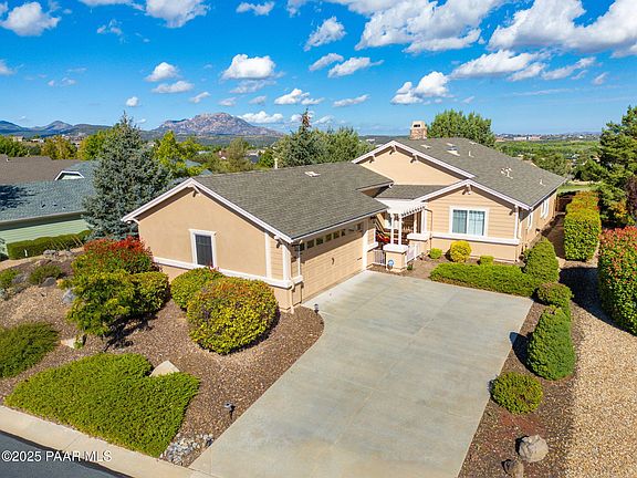 Luxury Golf Course Living in Prescott Lakes!Welcome to refined living in the coveted gated Cottages at Prescott Lakes. Perfectly positioned on one of the community's largest lots, this immaculate 2 bedroom, 2 bath home with a den captures panoramic views of Granite Mountain, the Dells, San Francisco Peaks, and Willow Lake--all from its enviable location along the 10th fairway.Step inside to discover timeless upgrades and elegant finishes. New plantation shutters, rich hardwood flooring, skylights, and a striking pre-cast fireplace create a warm yet sophisticated ambiance. The chef's kitchen and primary bath have been thoughtfully remodeled with granite countertops, soft-close cabinetry, stainless steel appliances, and designer tile. The guest bath has been refreshed with a new marble vanity and cabinet, blending modern touches with classic style. Recent improvements include a 2023 smart Wi-Fi HVAC system, whole-house recirculating hot water, a whole-house surge protector, new baseboards, epoxy-coated garage floors, an updated garage door opener, and a newer roof (2017). Offered fully furnished with a golf cart included, this turn-key residence is ready to be enjoyed immediately.Life at Prescott Lakes is defined by its world-class amenities. At the heart of the community is the Hale Irwin-designed championship golf course, renowned for its lush fairways, scenic elevations, and challenging yet rewarding play. Complementing the course is the stunning Prescott Lakes Clubhouse, where residents enjoy fine and casual dining, a fitness center, indoor and outdoor pools, tennis and pickleball courts, and a vibrant social calendar.This is more than a home--it's a lifestyle of leisure, luxury, and connection in one of Prescott's most sought-after communities.