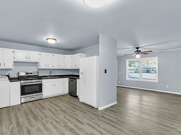 Discover this updated, turnkey ranch where modern style meets functionality. The moment you step inside, you'll appreciate the fresh feel, featuring new vinyl plank flooring and new paint that flows seamlessly throughout. This home is designed for flexible living, offering both a comfortable living room and a separate family room. The kitchen is equipped with updated appliances, including a brand-new stove, a dishwasher installed just months ago, and a refrigerator replaced in 2023. Outside, the property truly shines with its utility and space. Benefit from exceptional parking, including three exterior spaces, plus a detached 1-car garage featuring a workshop area that is perfect for projects and storage. Enjoy the fenced yard with two garden sheds, and a covered patio space, completing this attractive, refreshed home.