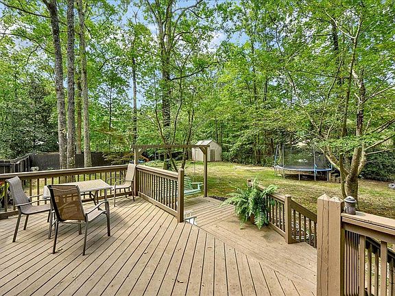 Two car garageReal wood-burning fireplaceLarge deckNew cabinetryOverlooking the backyardExpansive sunroomOversized den