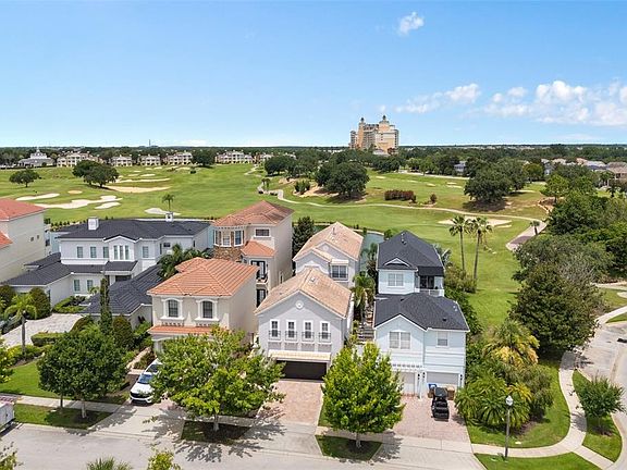 Active Club Membership! Offered fully furnished and turnkey! Positioned along the Arnold Palmer Legacy Golf Course, this 5-bedroom, 4.5-bathroom home offers panoramic water and golf views from multiple vantage points. Located near the center of Reunion Resort, the property provides quick access to the community’s restaurants and signature amenities. At the center of the home is a private courtyard featuring a heated pool, spa, summer kitchen, and outdoor shower. The main entry opens to a two-story foyer that leads to the kitchen, living and dining rooms, a powder room, and one bedroom suite with its own bathroom. Upstairs, the primary suite includes a cathedral ceiling, dual vanity, separate shower, soaking tub, and a private balcony overlooking the golf and water views. A third ensuite bedroom is also upstairs. The detached garage apartment, accessed from the courtyard, includes a kitchenette, two bedrooms, and a shared full bathroom, providing a private retreat. The 2-car garage has been converted into a media and game room, providing an additional 625 square feet of functional living space. Spanning 2,300 acres just 7 miles south of Walt Disney World, Reunion Resort is the only destination in the world featuring 3 signature golf courses designed by Jack Nicklaus, Arnold Palmer and Tom Watson. Reunion is also home to the Leadbetter Golf Academy. Onsite dining options include Eleven, 7593 Chophouse, Traditions, Grande Lobby Sushi Bar, the Clubhouse, the Cove, and Drifters at the waterpark. The water park features a lazy river, slides, outdoor games, and an aquatic playground. The gift shop in the Grande offers sundries and Starbucks coffee. Complimentary shuttles to the Disney transportation and ticket center leave from the Grande daily. Additional amenities include Camp Reunion, the tennis and pickle ball center, bocce ball, miniature golf, foot golf, fitness center, playgrounds, dog park, various community pools including a roof top pool on the 11th floor of the Grande, and more. Zoning for short term rentals allows homeowners to rent their property by the night providing a great opportunity for investors. Reunion also works great as a primary residence or a private vacation retreat. The resort offers three separate 24 hour guard gated entries and one owner/resident only entry.