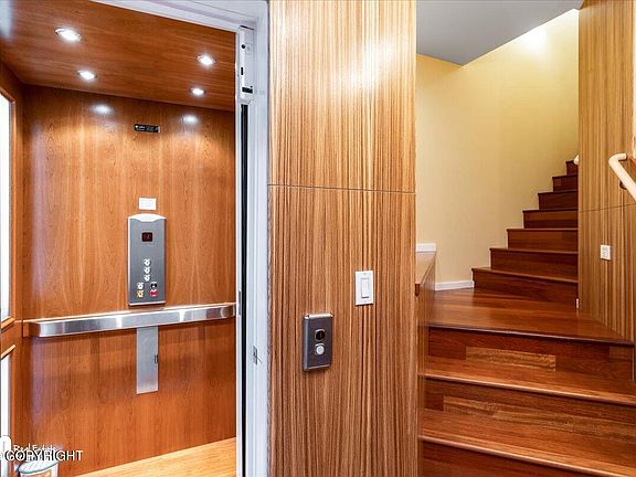 Downtown Bootlegger's Cove Home. High end finishes throughout this beautiful Bootlegger's home. Two large bedroom suites, steam shower in the master bath, inlet, mountain and city views. The home has high ceilings, large windows, balcony, a gourmet kitchencomplete with a Wolf range and SubZero fridge, in-floor radiant heat, a private elevator, heated driveway and oversized one car garage with new cabinets in the garage and lots of storage. Home is wired for audio throughout, wood floors, beautiful entry, central vac, gas fireplace and the icing on the cake is a private rooftop deck perfect for entertaining, one year old hot tub stays with the home. This is downtown living at it's finest.