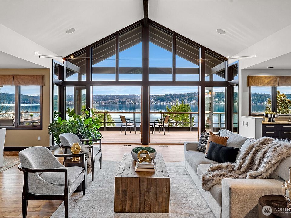 With 90' of prime Lake Sammamish shoreline, an expansive flat backyard, abundant parking, and exceptional privacy, this is a rare opportunity to own one of Lake Sammamish’s most desirable properties. A lush lawn leads to your own sandy beach and private dock with boat/jet ski lifts. Inside the fully remodeled mid-century modern home, a tranquil NW-inspired ambiance envelops you with stunning lake and mountain views throughout. The vaulted great room extends to the deck fostering effortless indoor/outdoor living—linger with wine as lapping waves soothe. The main floor primary suite with heated floors and soaking tub indulges after active days. Downstairs offers a bonus room retreat with fireplace. Just minutes from I-90 and Bellevue schools.