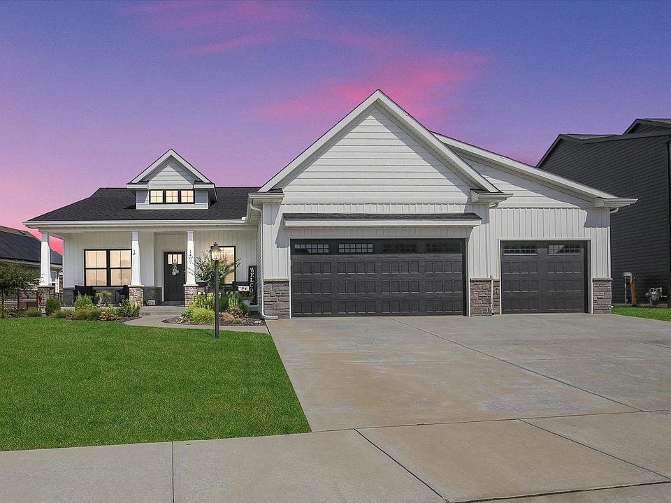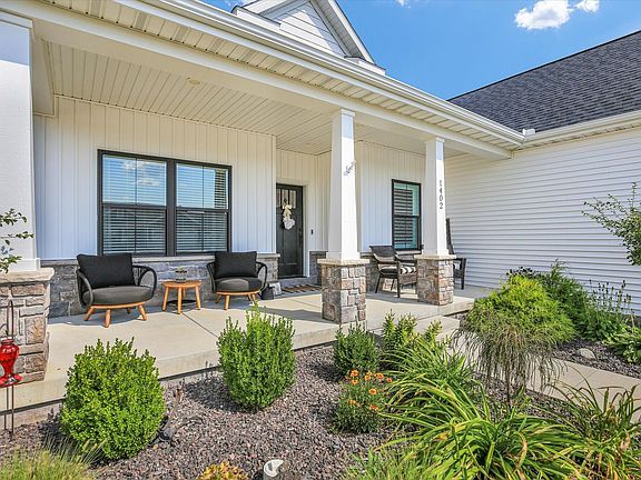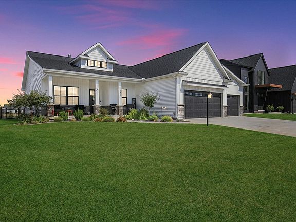 Discover the perfect blend of comfort, style, and lakefront living in this stunning 3-bedroom, 2-bathroom ranch built in 2021. Designed with a thoughtful split floor plan and high-end finishes throughout, this home is a true retreat. Step inside to find an open-concept layout filled with natural light, showcasing designer details and impeccable craftsmanship. The gourmet kitchen features premium countertops, custom cabinetry, and top-tier appliances, flowing seamlessly into the spacious living area-ideal for both everyday living and entertaining. Relax in your luxurious primary suite, complete with a spa-like bathroom and generous walk-in closet. Two additional bedrooms are tucked away on the opposite side of the home for added privacy. Outside, enjoy peaceful lake views from your beautiful screened-in porch or take advantage of the fully fenced backyard-perfect for pets, play, or quiet evenings by the water. The full unfinished basement offers endless possibilities for future living space or storage, while the oversized 3-car garage provides plenty of room for vehicles, hobbies, and more. Every detail has been thoughtfully chosen to create a home that's as functional as it is beautiful. With modern construction, attention to detail, and a prime lakefront setting, this property truly has it all. Don't miss your chance to experience lakefront living at its finest-schedule your private showing today!