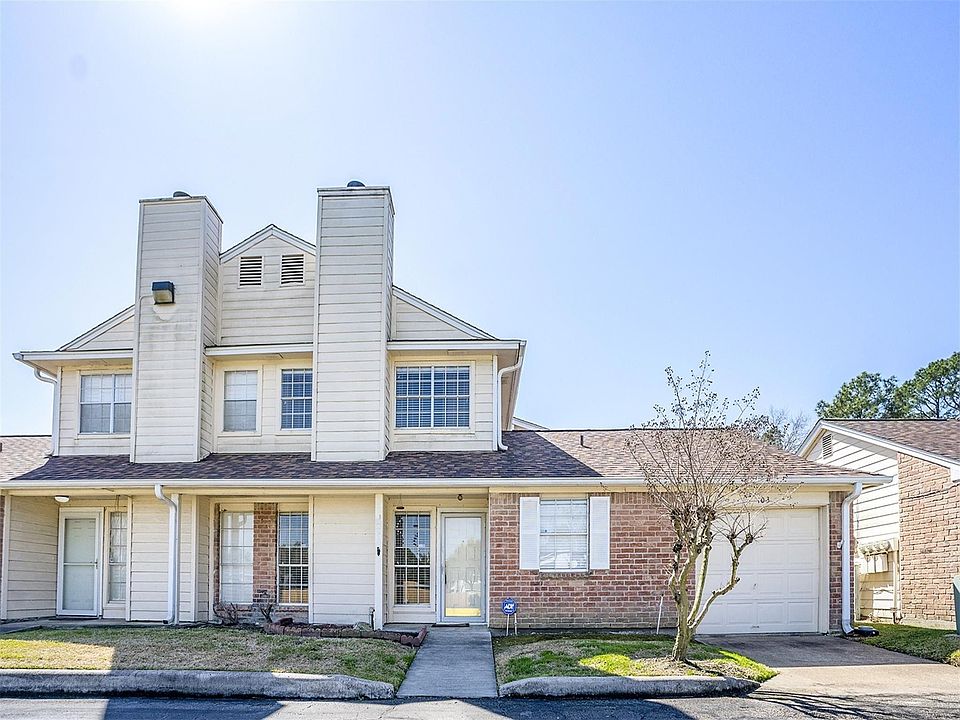 Move-in ready!!! Updated 2 bedrooms, 2 baths, 1 car garage townhouse with balcony & patio located in a quiet neighborhood of single-family homes. Spacious Primary Bedroom upstairs, and bath with walk-in shower. Oversized family room with cozy fireplace, walk to the dining/kitchen combo with granite countertops and stainless appliances: utility room inside, second floor. Enjoy the pool when relaxingNew A/C, roof, flooring, carpet, fresh paint throughout. NO FLOODING. Schedule an appointment today!!!