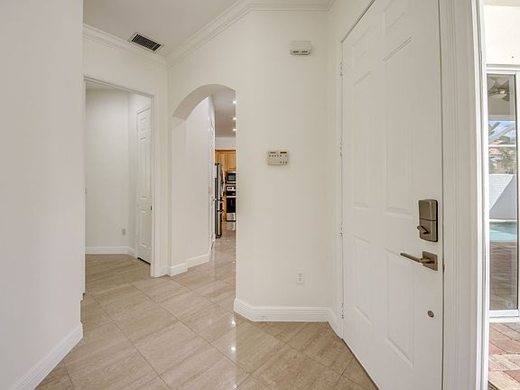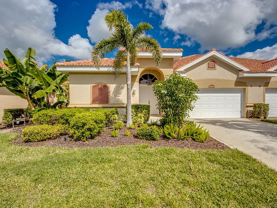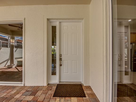 Welcome to Bell Tower park Community, quietly tucked away from the wonderful city of Fort Myers yet just minutes away from RSW International Airport, "Fortune 50 Top Cardiology" hospital, an abundance of restaurants, banks, parks, shopping, sports facilities and entertainment abound. Bell Tower Park is a lush gated community with a stunning club house complete with fitness center & exercise room, Olympic size pool w/spa, grill station w/ picnic areas. New multiple pickleball courts are in the works, along with tennis court, basketball court and bocce ball. A second pool is located in the back of the community with Tot Park. This desirable one story floor plan features a main house and a separate guest suite with travertine flooring throughout. The home has a large master bedroom with ensuite soaking tub, private walk-in closet with built in shelving. Located on the far end of the home for privacy is a guest room, walk-in closet with a bathroom and shower. The great room is spacious for entertaining with a large hall closet and breezeway to an exceptionally large open kitchen with pantry. Newly stainless steel appliances, warm wood cabinets and a granite island. Both living area and kitchen open to the outdoor living space with spa, pool (propane heated). Off the pool area is a separate guest house with with a full bedroom and kitchenette. Laundry room is off the kitchen with a wash basin and cabinets. Attached 2 car garage is convenient with our rainy season. New tiled roof (2023) and storm shutters.
