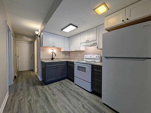 Completely Updated 1 BR in super clean building with long term tenants. First floor unit - no steps at all. BRAND NEW kitchen with shaker cabinets, soft-close doors and drawers, and granite counters! Brand new refrigerator and stove as well. Luxury vinyl tile flooring throughout. Heat, water, garbage, and off street parking spot included!! Apartment has coin laundry on site, and FREE off street parking spots in front of building. Owners are strict on credit score (625 minimum) and income requirements (3.0 times rent). Cats allowed with extra security deposit and rent. NO DOGS ALLOWED other than registered service animals. Heat, water, garbage, and off street parking spot included!! Tenant pays electric only.