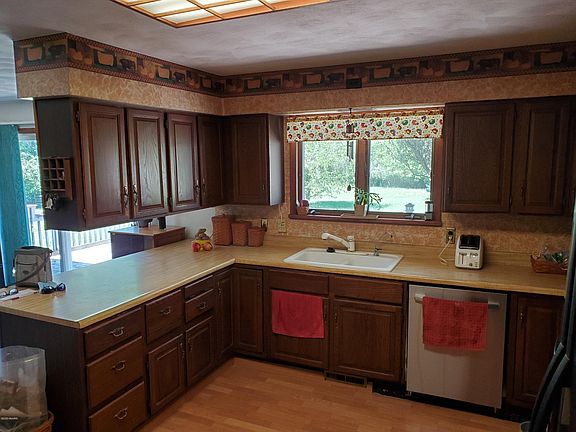 A wonderful opportunity to own acreage and house your animals. This nice sized ranch is situated on 10 acres, approximately 6 acres of fenced-in pasture and 4 acres of woods. You will find several outbuildings with stalls and run-ins for your animals, as well as chicken coops. A newer roof, new garage door, new carpet in the bedrooms, a large back deck, and a full basement with two egress windows are a few highlighted features. This four bedroom, two full bath home includes all stainless steel appliances, central air, a high efficiency Bryant furnace, a 200 amp service, and a two car attached garage. Sit back and relax by the gas log fireplace in the living room or stay warm next to the wood stove in the basement. With a little TLC and your own finishing touches this home will sure please!