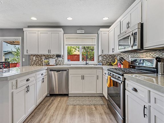 Lovely 2,900+ sq. foot home located on a dead-end street. Comfortable living in this 4 bedroom, 2.1 bathroom home w/ main level office. Features include remodeled kitchen & baths, open great room style kitchen to family room, SS appliances w/ gas range, laminate wood floors, formal living & dining, spacious upper bonus room, & large master suite. Perfect timing to enjoy spring in the fully fenced backyard w/ covered deck, hot tub, flat grassy area, & tool shed. Potential RV parking on side yard.