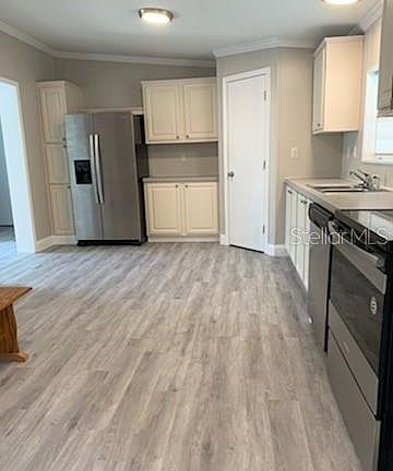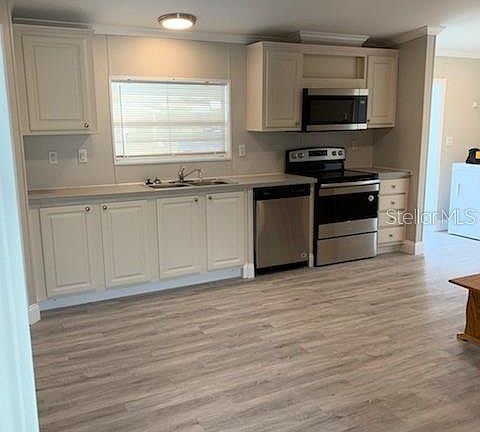 Well maintained 3 bedroom and 2 bath home with recently installed flooring and freshly painted. This open floor plan is great for entertaining or enjoying time with the family. The focal point of this home is the gourmet kitchen with stainless steel appliances and cabinets galore. The master bedroom features an ensuite with both garden tub and shower and tons of closet/cabinet space. Attached is a 36X12 covered patio and carport. This home features an inside laundry and a 12X12 storage/work shop area attached to the patio. HOA included water, sewer, common areas and community swimming pool.