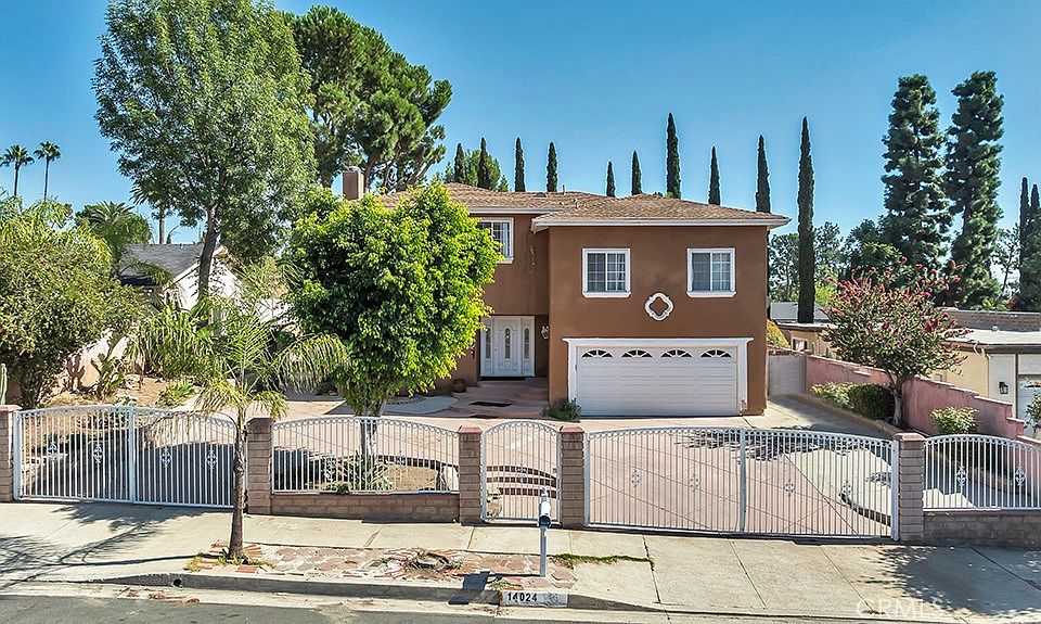 Rare Find in the Foothills of Sylmar - Multigenerational Living at Its Best! Welcome to this privately gated two story home, ideally nestled in the serene foothills of Sylmar. Offering over 3,000 sq. ft. of versatile living space on an expansive approx. 11,000 sq. ft. lot, this property is a perfect blend of comfort, functionality, and entertainment potential. The main residence features 4 spacious bedrooms and 2.5 bathrooms, with all bedrooms located upstairs for added privacy. The primary suite is complete with view balcony, walk-in closet, and updated ensuite bathroom featuring a granite vanity and tiled shower. Secondary bedrooms are generously sized, each offering peaceful treetop views. Step inside to find a welcoming interior adorned with newer wood laminate flooring, scraped ceilings, and dual fireplaces – one in the living room and another in the cozy family room. The tiled kitchen has tons of cabinet space, an adjacent dining area, and there's a bonus enclosed patio with French doors, two ceiling fans, and flexible space for entertaining, a home office, gym, or playroom. Enjoy year-round comfort with dual pane windows, central air & heat, and the convenience of an indoor laundry area. The attached two-car garage offers direct access, while a large circular driveway provides additional parking, including RV potential. Step outside to an entertainer’s dream backyard, featuring a spacious patio, built-in BBQ, and a sparkling swimming pool—perfect for family gatherings or weekend get-togethers. But that’s not all—this home also includes a wonderful guest unit (permitted as a recreation room) with its own private side entrance. This space includes a living room, kitchen, 2 bedrooms, and 1 bathroom, offering an ideal solution for extended family, guests, or even rental potential. Located with easy access to the 210, 118, 5, and 405 freeways, as well as nearby parks, shopping, and schools, this home is a rare opportunity for buyers seeking space, flexibility, and location. Don’t miss this unique opportunity to own a one-of-a-kind property offering true multigenerational living!