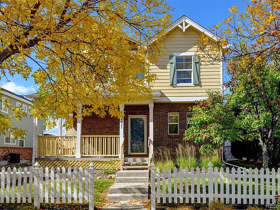 Magnificent mountain views and a prime location across from the community park! This beautiful Broadlands home features a versatile carriage house with its own bathroom—ideal for guests, in-laws, multi-generational living or older children. Enjoy peaceful mornings on the front porch swing overlooking the park. Inside, the main level offers an open layout with new LVP flooring, fresh paint, and a cozy gas fireplace in the living room. The kitchen features stainless steel appliances, a center island, pantry, and new overhead lighting, while the large dining area is perfect for gatherings. Upstairs are three spacious bedrooms including a primary suite with a five-piece bath and large walk-in closet. A built-in desk in the loft creates the perfect homework or home office nook. The partially finished basement provides additional space for recreation or media use. Step out back to enjoy the mountain views from the patio and relax in the included hot tub. The fenced, landscaped yard offers privacy and charm. The carriage house, accessed from the rear stairs, adds incredible flexibility and value. Located in The Broadlands, one of Broomfield’s most desirable communities featuring golf, pools, trails, and multiple parks, this home delivers comfort, beauty, and convenience in every detail.