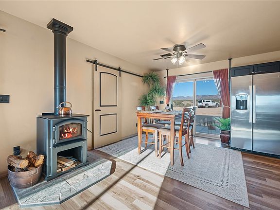 Welcome to an unbelievable opportunity on 40 acres of peaceful, wide-open land. This property sits on a hill with views that stretch for miles, surrounded by Juniper trees and some of the darkest, clearest night skies you will experience. Access is easy, and the property is just a short drive off Hackberry Road. Every detail, both for now and the future, has been carefully planned. The main home was completed in 2023 and offers 1,256 square feet of thoughtful design. The kitchen stands out with a large pantry, soft-close cabinetry, under-cabinet lighting, and granite countertops. The laundry area includes a utility sink and a circulating pump added to the water heater for instant hot water. The primary bedroom feels like a retreat with large windows that frame the sweeping views. Sliding glass doors lead to the covered patio, where you can enjoy quiet mornings and peaceful evenings. A 220 outlet is in place for a future spa. The new, never-lived-in Casita features 527 square feet with 1 bedroom, 1 bathroom, and an attached garage with climate-controlled storage at the back. Designed with mobility in mind, it also reflects the same beautiful build quality as the main home. It includes 2 covered patios, a kitchen with dark cabinetry, granite countertops, and a large bathroom with a walk-in shower. Both the home and casita have spray foam insulation to help keep utility bills lower. The private well produces about 100 gallons per minute and includes a 1 1/2 horsepower pump, 2,500 gallons of water storage, a fully insulated pump house, and a whole-house filtration system. There are also two large, fully fenced animal containment areas that give your dogs a great place to run. The property was designed to take full advantage of the scenery and plan ahead for future needs. Below the home is a rough-graded pad ready for a future shop or horse setup. There is an RV clean out with water and electric, wiring in place for Starlink, and underground electrical conduit already run and marked for upcoming projects. The panel has space for future additions. If you just cannot get enough of the outdoors, there is even a “seasonal toilet” that lets you enjoy the fresh air and starry skies. If you are looking for the ideal homestead in a higher elevation with complete privacy and panoramic views, this one is hard to beat. This is a property you truly need to see to appreciate.