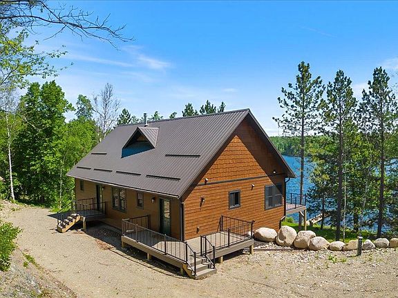 Tucked away on 2.8 acre lot on Fall Lake, this brand-newly built home offers direct access to the BWCA and breathtaking views from every angle. Along with300 feet of glorious shoreline, the open-concept floor plan and no detail was spared. This paradise is turnkey and comes furnished. A massive stone fireplace helps you unwind, and the 30x14 master ensuite features a walk-in closet and access to the deck overlooking the lake. Home offers over 3000 sqft of finished living space. The kitchen and dining area harmoniously blend modern design with rustic charm, creating an inviting space that is at the heart of the home. The kitchen has ample storage, and a large island perfect for the enthusiastic chef. Adjacent to the kitchen is the dining area, beautifully lit by natural light streaming in from the large windows that offer captivating views of Fall Lake. Ideal space for family meals or entertaining guests. The thoughtful layout ensures a seamless flow.