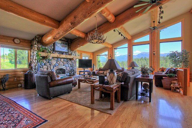 Breathtaking views!! The custom Log home has some of the nicest views in the valley overlooking Lake Fork Creek & Jug Handle Mountains. New Addition & remodeled in 2009, with gorgeous 12+ logs, custom rock fireplace, granite counters, wood floors, jetted tub and more. 3823 sqft 3 bedroom plus office area & Loft/art room & Sun room 2nd living room & bath in walk out basement, with stunning views. Large 3 car garage with fully finished insulated shop. Nice sized deck overlooking the river, perfect for entertaining, deck has remote sun setter retractable awning. 1.67 acres nicely landscaped with paved driveway & new entry. Property has additional private well for irrigation. Also community has 12 acre common area along Lake Fork Creek. Very well maintained home throughout.