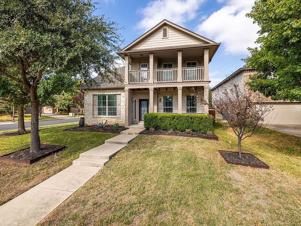 Welcome to 14028 Turkey Hollow Trail. As you enter this beautiful home, you will notice the open floor plan with brand new, light oak flooring and brand new carpet. The office is located at the front of the home, with open living and kitchen area, and a covered back patio with a spacious backyard filled with many native Texas plants and trees. Upstairs, you will find the large primary bedroom with a private balcony, and two guest rooms with a shared bathroom. This home has a brand new roof (July 2025), brand new refrigerator and washer and dryer (2025), newer AC unit (2021), updated painting and more. Come check it out before it's gone! All MLS info to be verified by buyer.