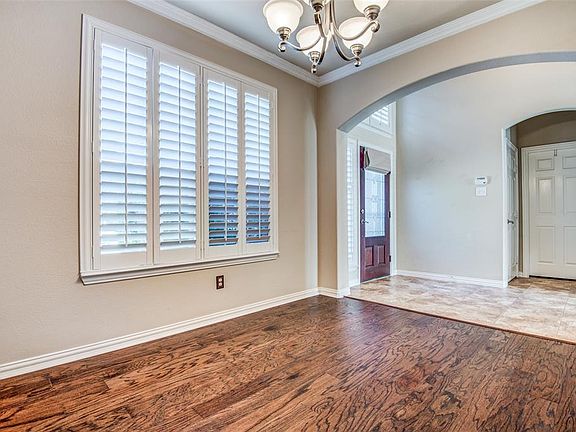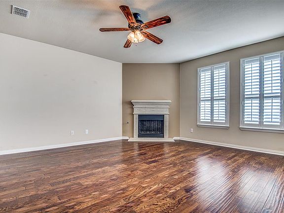 Beautiful Haslet home! Curb appeal made lovely by landscaping package and stone accents. Open floor plan with 4 bedrooms and 3 and half baths. New plantation shutters for bright natural light, wood floors, granite counters, and tile backsplashes. Gas start fireplace creates a cozy atmosphere, jetted tubs perfect for relaxing at home, and stainless steel appliances give a clean and timeless vibe. Garage is extra deep for bigger vehicles and or motorcycles. Back yard is the perfect place to watch the Haslet fireworks. Home is in highly sought out Northwest ISD.