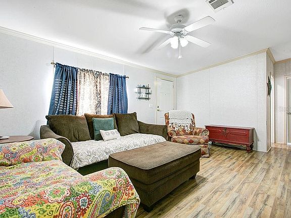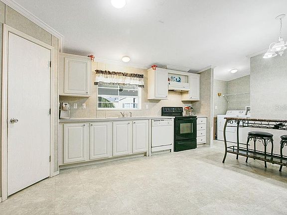 Lovely 3 bedroom 2 bathroom manufactured home in The Meadows of Astatula with 1,300 sq ft of living space + 2 car carport + Workshop. The kitchen has custom white cabinetry including more pantry space, a window over the sink with views of the porch area, and plenty of eat in space. The spacious master bedroom has vaulted ceilings. The master bathroom has a walk in shower, garden tub, a dual vanity and a walk in closet. This split floor plan has a hallway from the living room with two separate bedrooms with walk in closets and a full bathroom. The inside laundry leads onto the fully screened in porch with an enclosed workshop that offers plenty of storage! Community amenities include a pool with paver decking and plenty of space for entertaining on picnic tables with shade umbrellas. Make an appointment to see this home today!