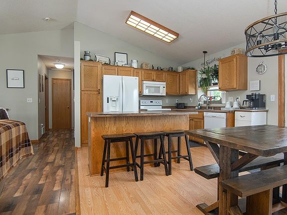 Location, location, location. Easy care, move in ready home in St. Croix Falls. Located just one mile north of the Medard's round about, this lovely home has been carefully updated, well cared for, and it has an established yard for your enjoyment. 4 full size bedrooms and two baths, and some very nice living spaces inside and out with both an upper and a lower living room and both a two level deck and a patio with a firepit, making it easy to toast marshmallows in the evening or morning coffee. There is an extra garage for toys or recreational vehicles. St. Croix Falls is home to many wonderful hiking trails, biking trails, a fabulous state park, a national scenic waterway, the St. Croix River, a skate park and it is close to both Trollhaugen and Wild Mountain for those adventure seekers. Good schools, great neighborhood and it's easy to get around -being just a bit country but close to everything this house is just waiting for you to call it home! Come see this one today.