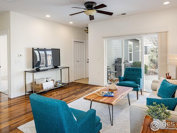 Experience effortless living in this charming, ranch-style patio home in Eastgate. Beautiful walnut flooring flows throughout the main living areas complemented by walnut cabinetry throughout. The kitchen showcases granite countertops, a natural stone backsplash and an adjacent dining area. Sliding glass doors in the living room open to a private patio backing to a greenbelt with desirable western exposure. Two sizable bedrooms include the primary suite boasting vaulted ceilings, a walk-in closet and a sliding barn door opening to a serene bath. Residents may choose to use the secondary bedroom as a home office or guest accommodation. The large laundry room includes built-in cabinets and a stackable washer and dryer set. Don't miss the easy access additional storage over the garage, 10 x 20! A convenient HOA covers front lawn, landscaping and snow maintenance. Back patio has been extended, includes plumbed in gas for included grill and pull down shades for comfort and privacy. New roof in 2023. The oversized 2-car garage offers sealed concrete floors and over 400 square feet of storage space above garage. Residents enjoy a coveted location with close proximity to shopping, nature trails, Stephen Day Park and Union Reservoir.