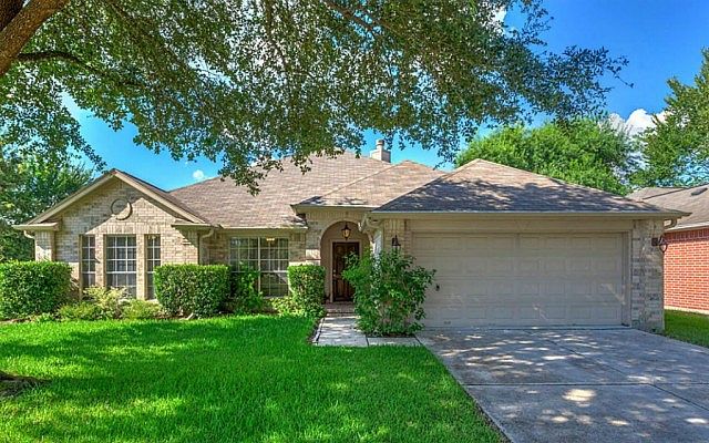 Lovingly maintained 1-story on corner lot across from community pool & playground! Common areas feature 10' ceilings, slate tile flooring, recent paint, & abundant natural light! Plantation shutters & crown moulding in select rooms! Utility room w/ linen closet + space for fridge! Many recent updates including gutters (2015); SS appliances & refrigerator (2015); water heater (2012); full HVAC system (2009); roof (2008). Dual-sided fireplace warms living & dining! Covered patio; sprinkler system!
