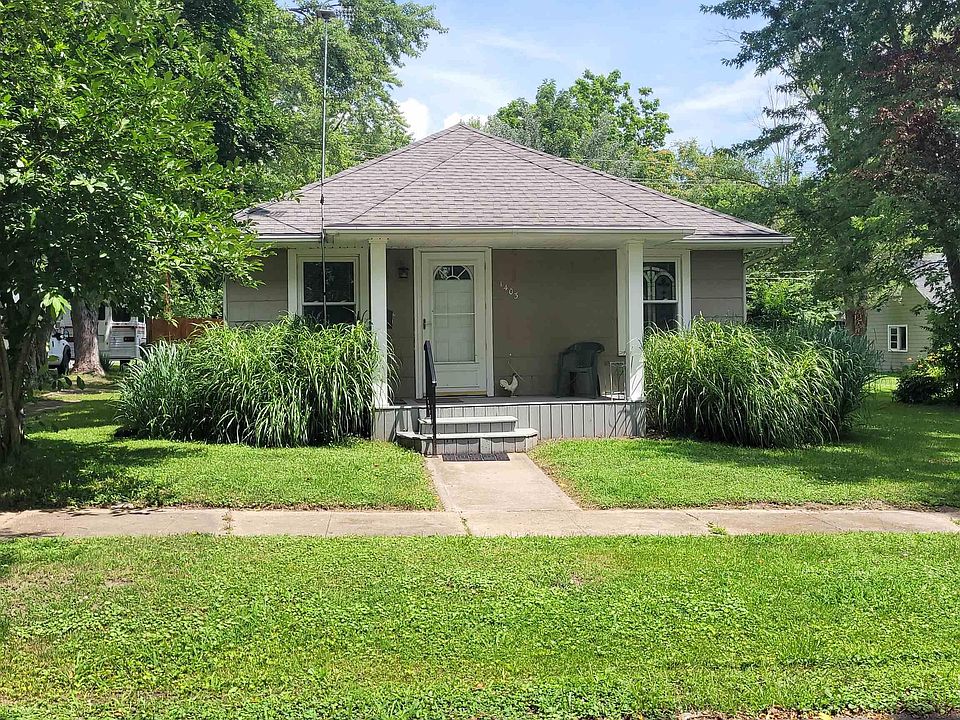 An adorable 3 bedroom, 1 bath home that sits on a corner double lot with a one-car detached garage. As you the enter home from the covered front porch, the living room is spacious with lots of windows providing natural light. The bedrooms provide ample space, and home has newer carpet throughout. With a brand-new fridge and newer dishwasher, the kitchen has all your basic needs. Laundry room conveniently located just off the kitchen with backyard access. A nicely maintained and landscaped back yard with privacy fence, and not to mention the second lot that makes a great location for enjoying the outdoors! The detached garage has newer windows and doors with a small workshop area perfect for tinkering! Home has a partial unfinished basement that has been kept very clean and is accessed from inside home. Come take a look!