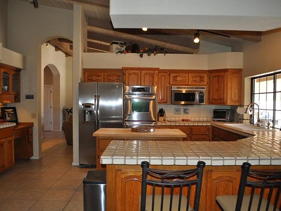 Updated custom home in prestigious Warner Estates, formal living & dining, family room has corner fireplace & wall of French doors leading to rear covered patio, kitchen has updated stainless appliances, vaulted ceilings, master suite features his& her closets, large soaking tub & separate shower, cozy corner master bedroom fireplace, master & 1 bed split from 3 spacious bedrooms, plus office, plus 2nd family/media room, plus den/exercise room off master, custom pool w/grotto water fall & slide, good-sized yard & raised deck patio area, upgraded high-efficiency SEER rated AC, over-sized side entry 3 car garage, guest suite w/separate entrance. Electric RV gate for extra parking. Hurry for this fine home! New roof & sub-roof July 2021. Complete interior remodel July 2022. Solar panels added August 2022.